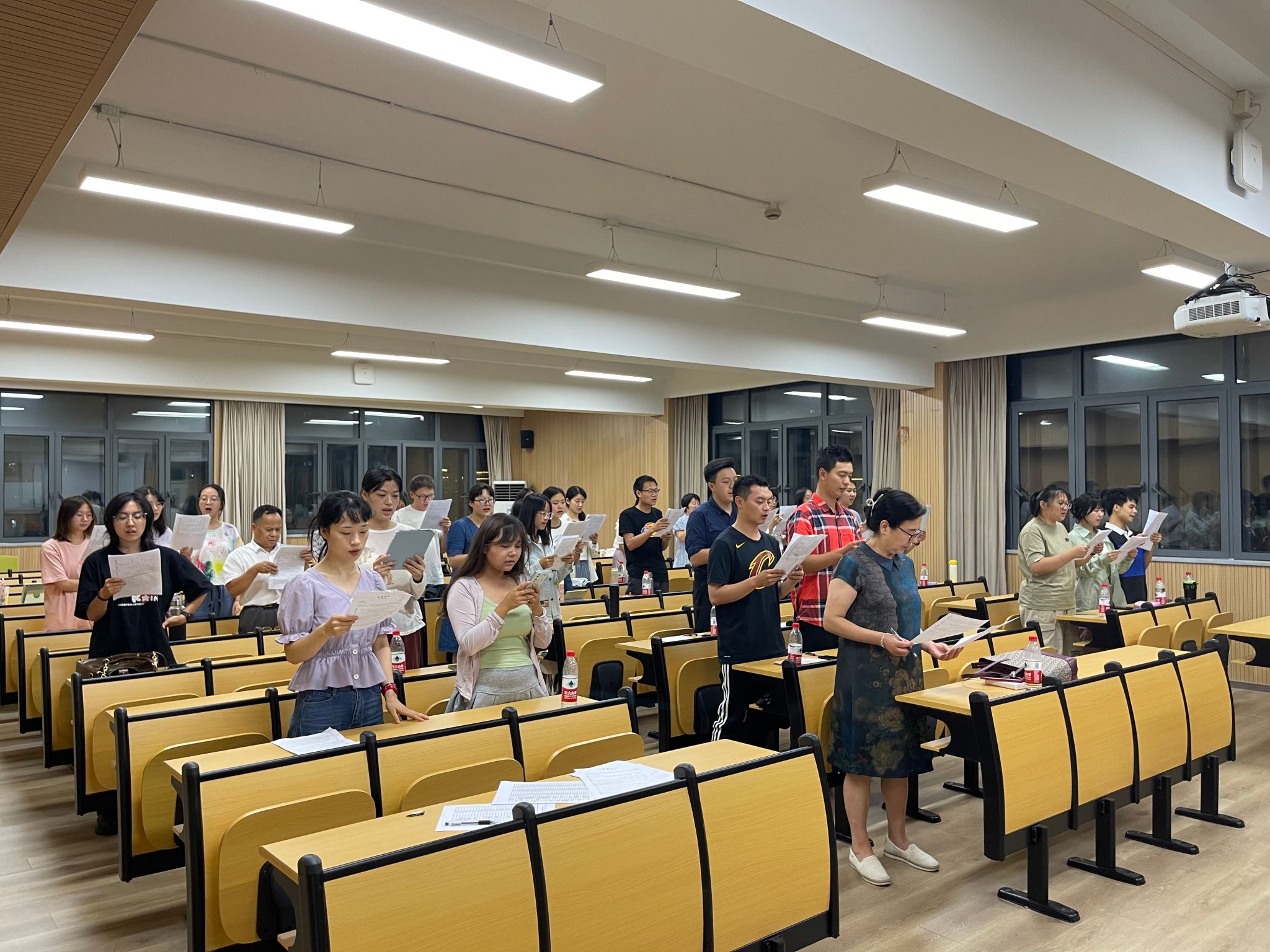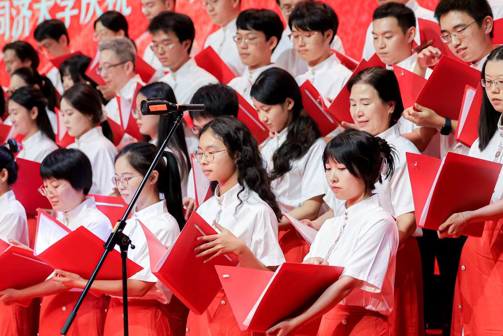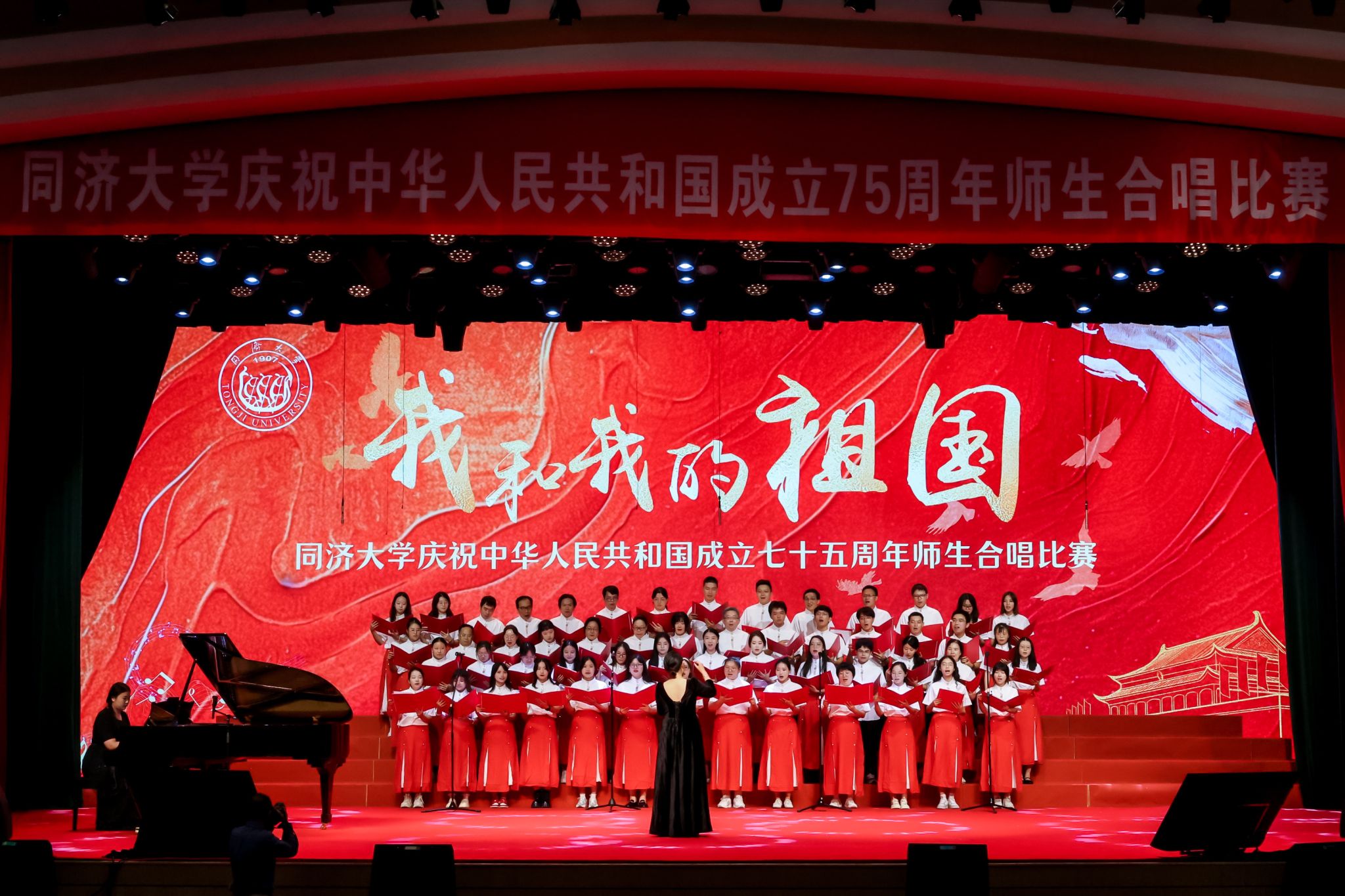 七十五载长歌奋进,赓续前行再奏华章。75年以来,中国共产党带领团结中国人民不负使命,阔步走上以中国式现代化全面推进中华民族伟大复兴的新征程。《爱我中华》饱含着同济马院人对对祖国的热爱之情。为了在舞台上呈现出最佳状态,参赛师生们在繁忙的工作学习之余,一次次全力以赴集合排练,一遍遍从音阶练习到分声部训练再到合唱,在细节的不断精心打磨中,展现了马院人的时代风采。