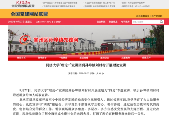 该项目走进基层,接触群众,得到了“大美陵城”、“同济理论宣讲”等微信公众号的推送和转载,同时也得到了共产党员全国党建网、中国老员工在线、齐鲁网·闪电新闻、宣城日报社的报道,活动影响力得到进一步提升。