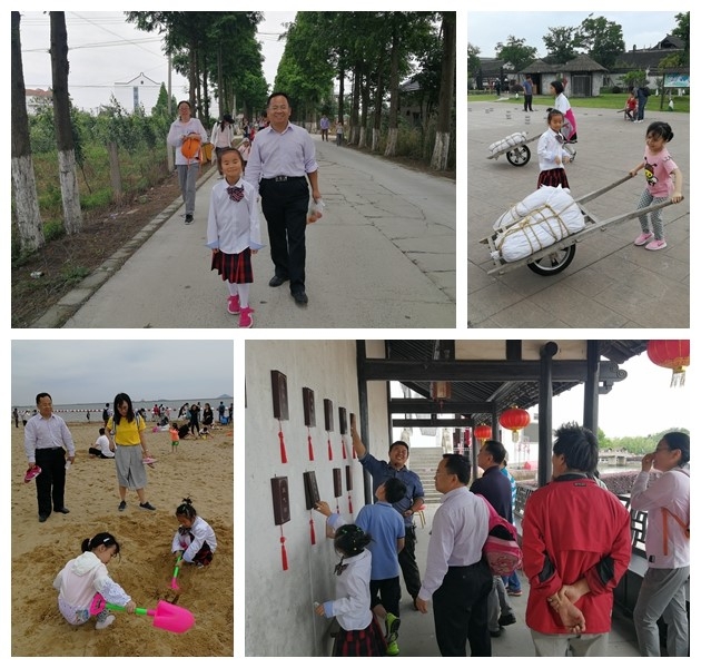 廊下生态园里保留了金山民居“白墙、黛瓦、观音兜”的浓郁地方特色,充满了诗情画意,让人感觉仿佛置身世外桃源,身心舒适、放松。教职工们带着孩子一起参观了江南农具馆,让平时身处城市的孩子们近距离了解和体验传统的农耕文化,感悟劳动的价值和快乐,引导他们德智体美劳全面发展。孩子们还在园内喂小动物,播撒爱心;在稻草人展区里嬉戏,传递友谊。