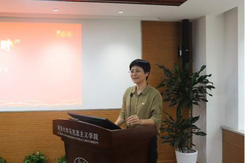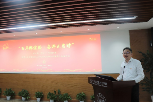 徐蓉在讲话中向“百年映初心百讲颂芳华”百门课程的完成并推出表示热烈祝贺,向为百门课程的研究和制作付出辛勤努力的同学们致以诚挚的感谢,希望同学们在此过程中不仅得到理论宣讲技能和水平的提升,更在思想上、精神上受到洗礼,激励大家继续深入研究马克思主义理论和党的最新理论成果,不断创新理论宣讲形式和方法,成为有信念理想、有理论本领、有实践创新的新一代青年马克思主义者。